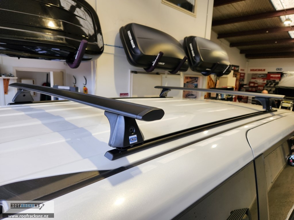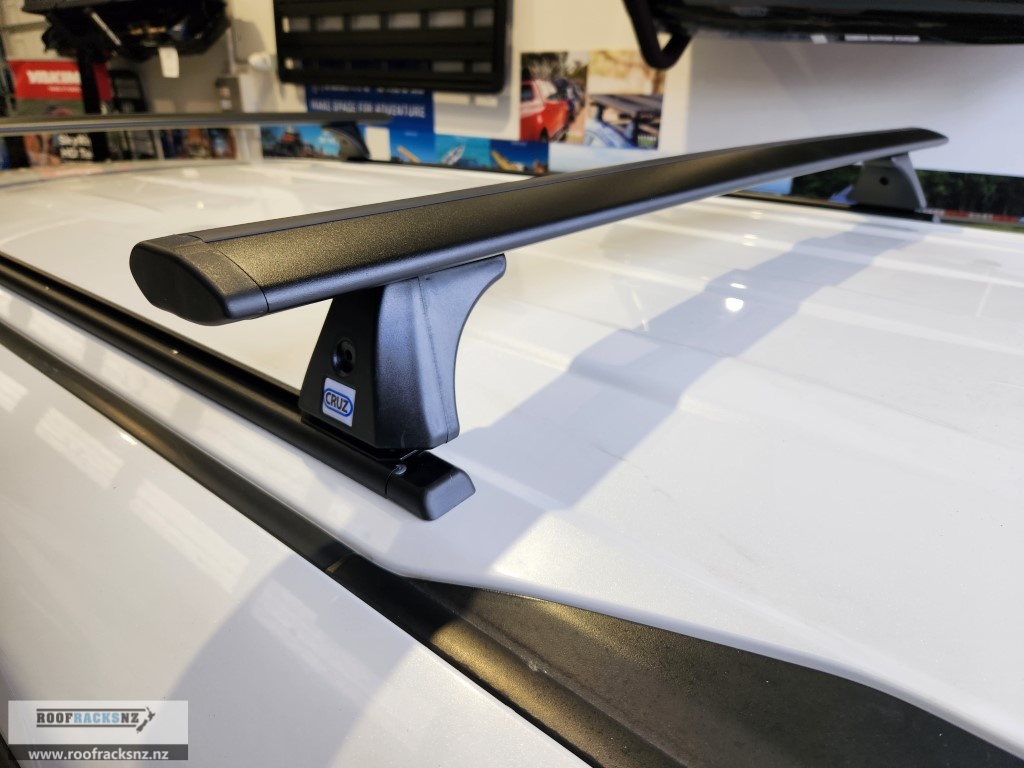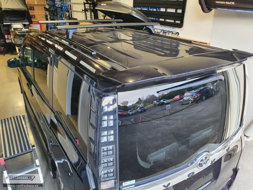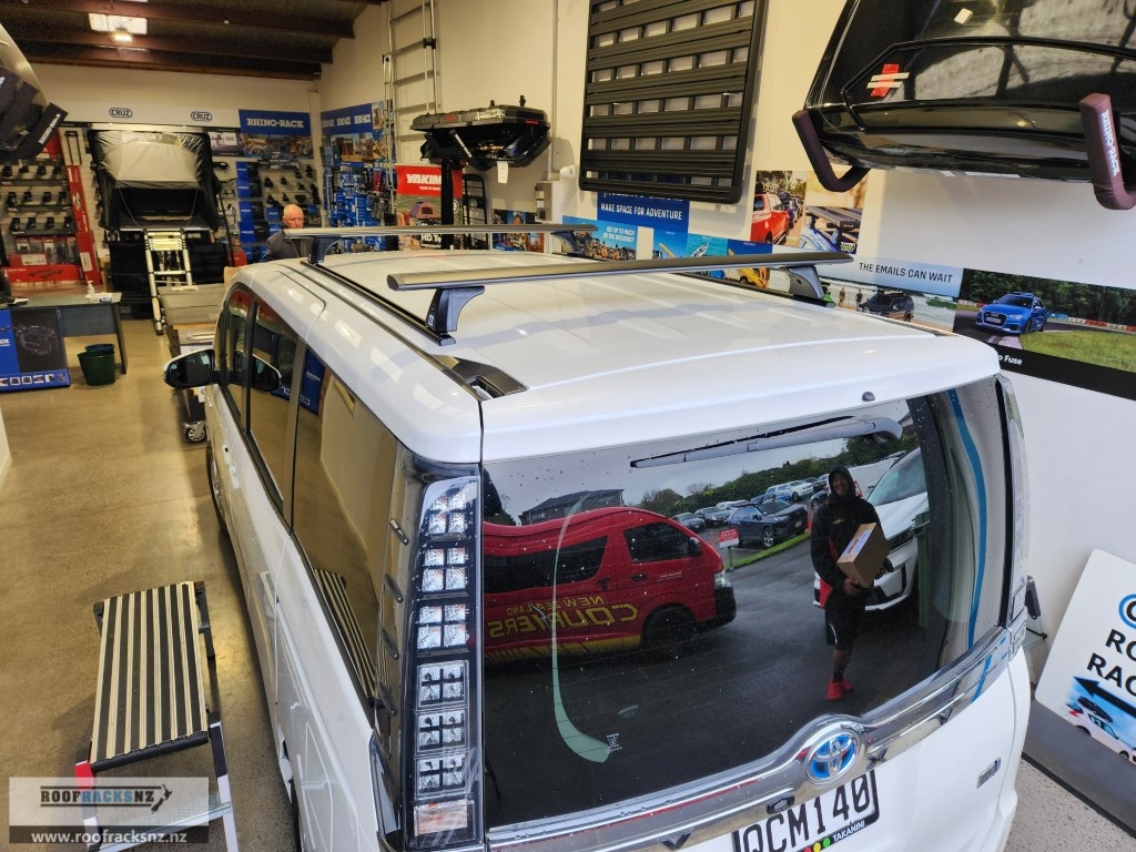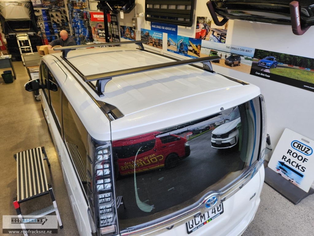 Please note: this is a trackmounted roof rack system that requires 1.5m long tracks to be permanently riveted to the roof of this Toyota Voxy. The roof racks then mount into those tracks. We recommend installation done by us in store- we cannot guarantee install work done by a third party. This system includes everything you need to fit two CRUZ Airo Dark bar roof racks to your vehicle – both bars, a set of 1.5m tracks and the trackmount fitting kit supports. These high quality roof racks deliver a strong, safe, aerodynamic, versatile load carrying system.