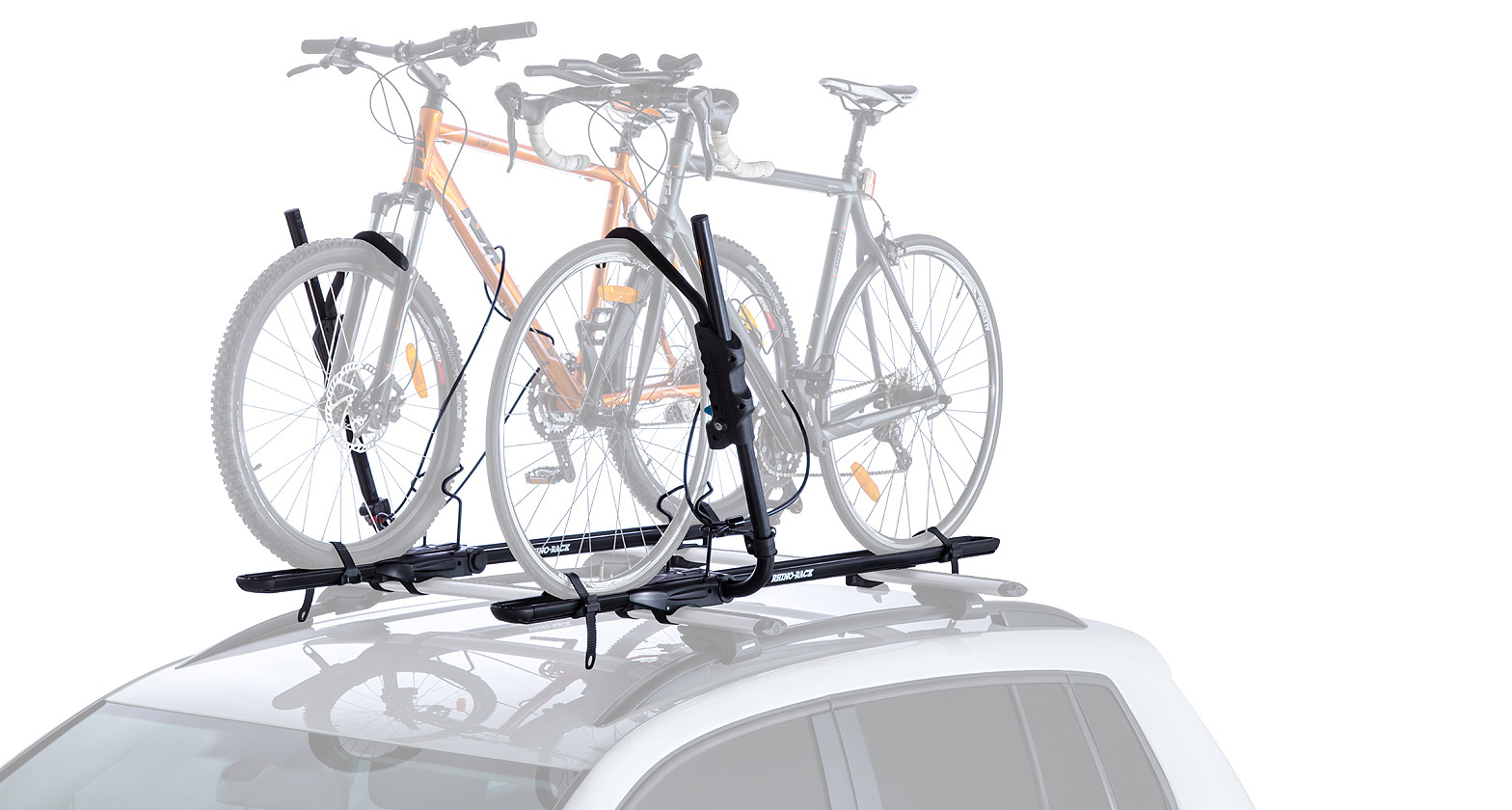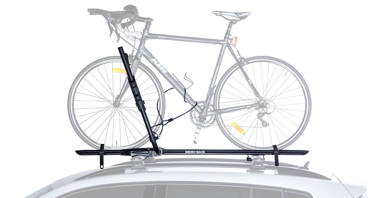 Wheel straps secure bike firmly to your roof.